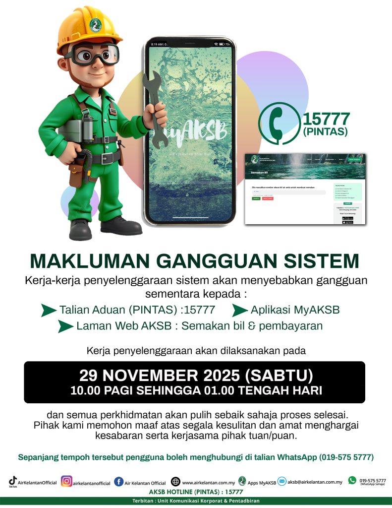 © Hakcipta Terpelihara 2025 - Air Kelantan Sdn. Bhd. (AKSB) - 199401006290 (291969-M)